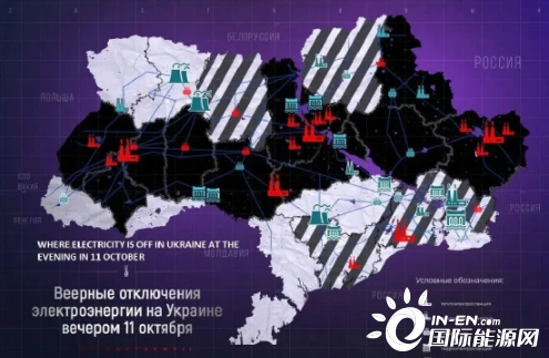 對烏克蘭電力系統(tǒng)打擊效果也初步顯現(xiàn)。相關(guān)信息顯示如下圖,圖中紅色代表損壞、黑色代表該地區(qū)停電,陰影代表該地區(qū)供電出現(xiàn)嚴(yán)重問題。